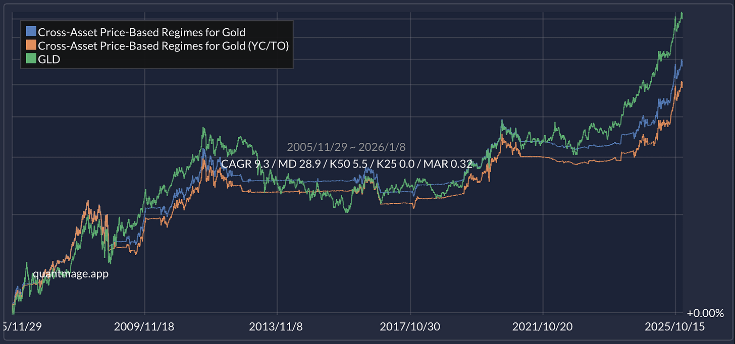 Gold isn’t just for doomsday preppers and central banks. It can be a smart, tactical piece of a modern portfolio—especially when paired with regime-based logic to avoid the dead zones.