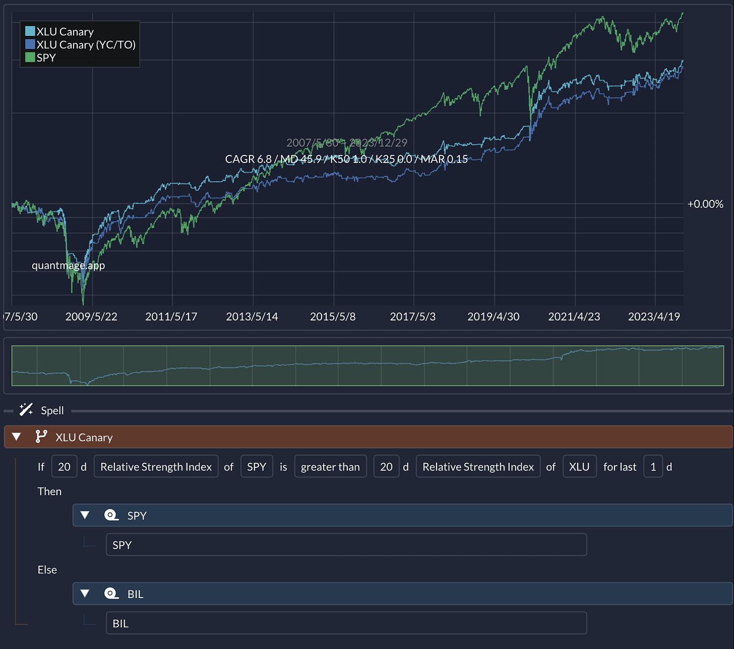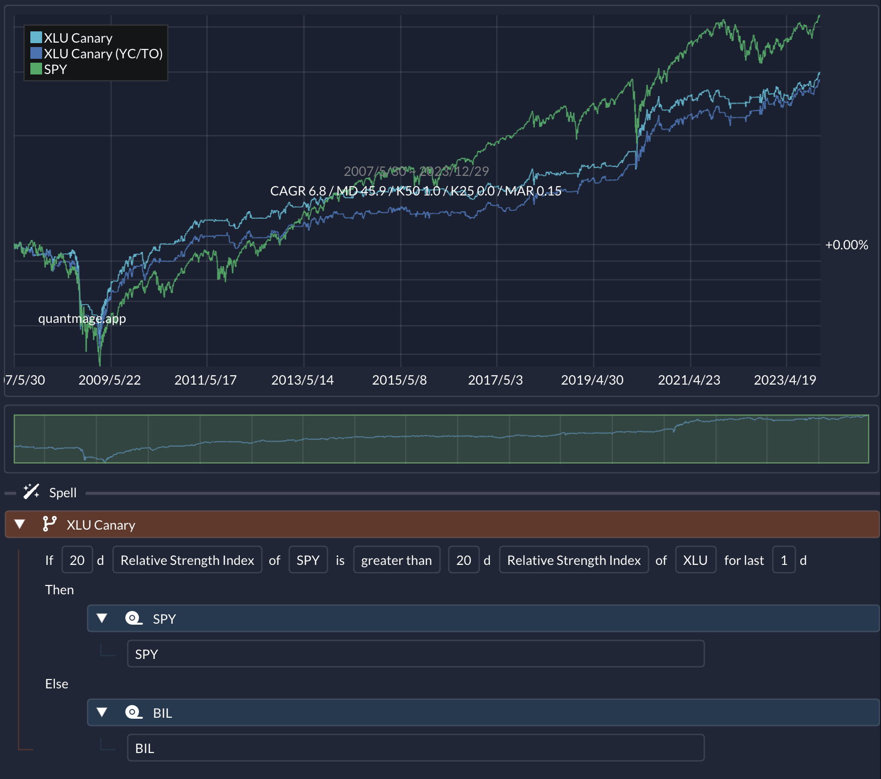 Next, we have the signal from “An Intermarket Approach to Beta Rotation”, a paper that shines the spotlight on utilities. The core idea here is using the utilities sector's performance against the broader market as our canary. Given the sector's higher yield, lower beta, and its nonchalance towards cyclical swings, this makes a lot of sense.