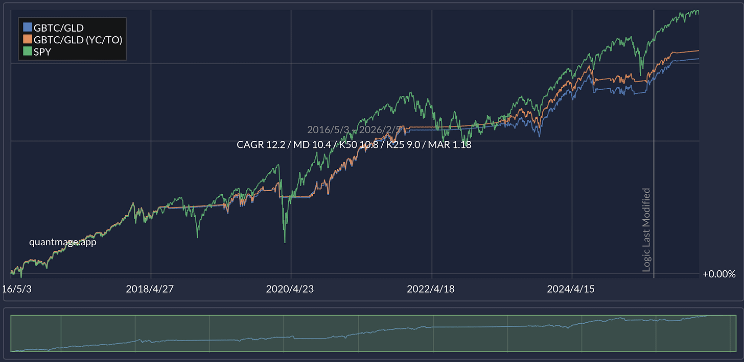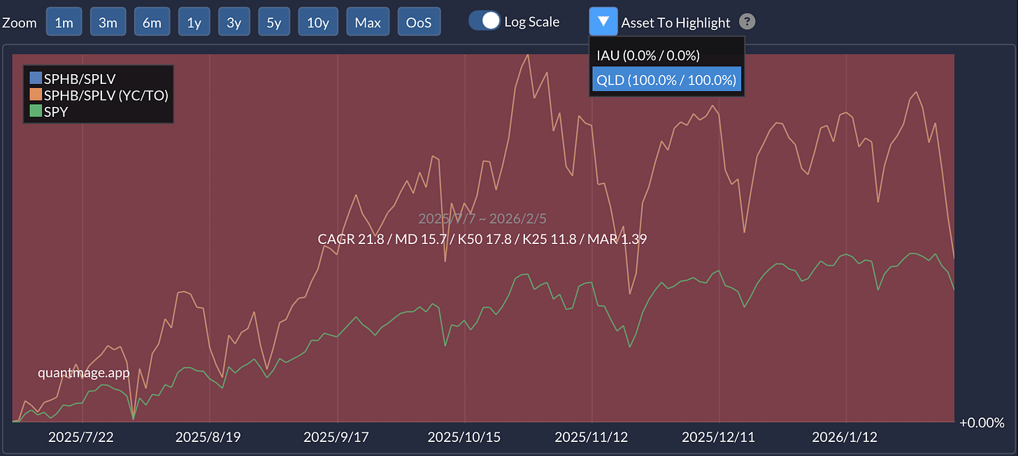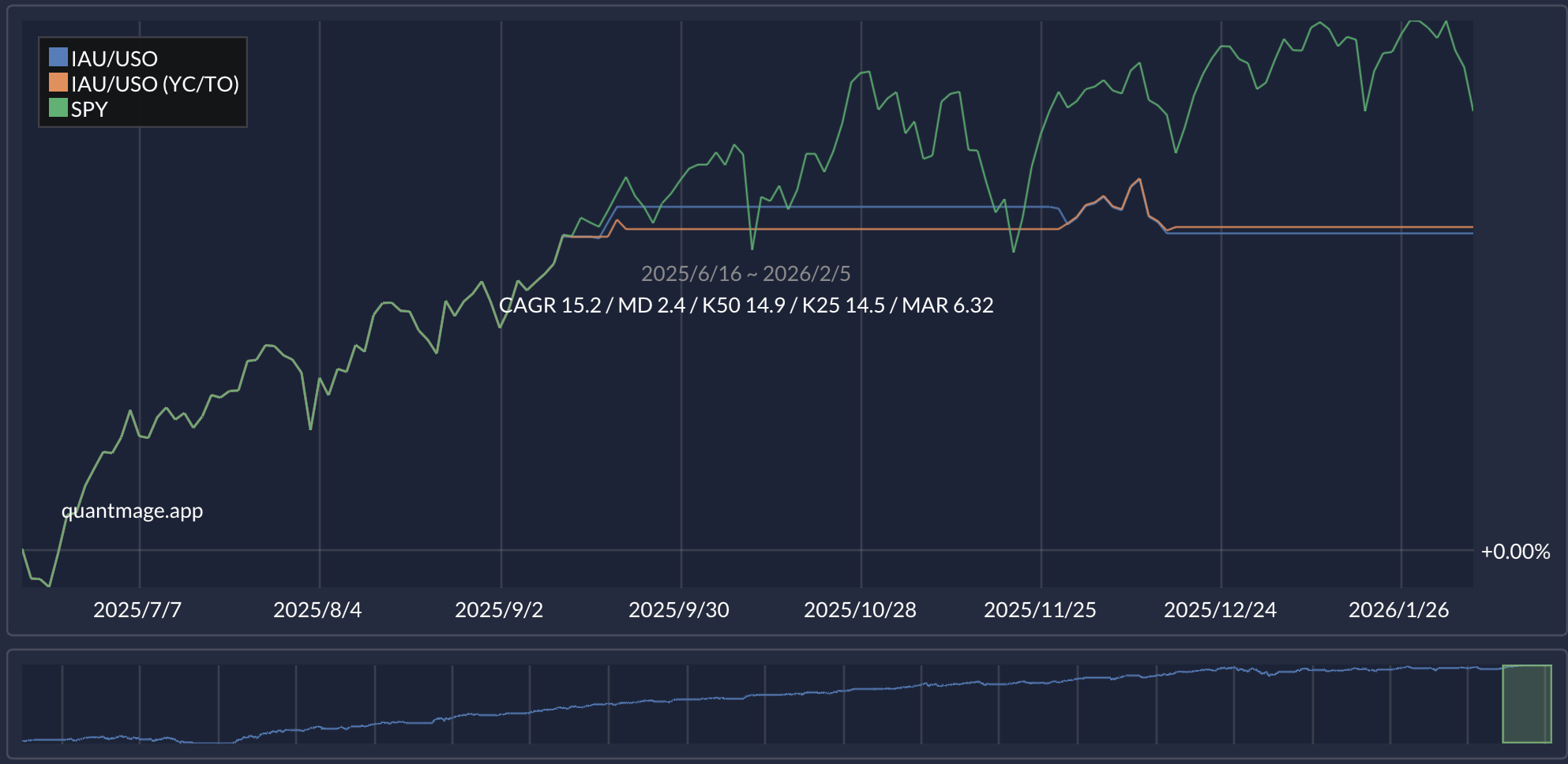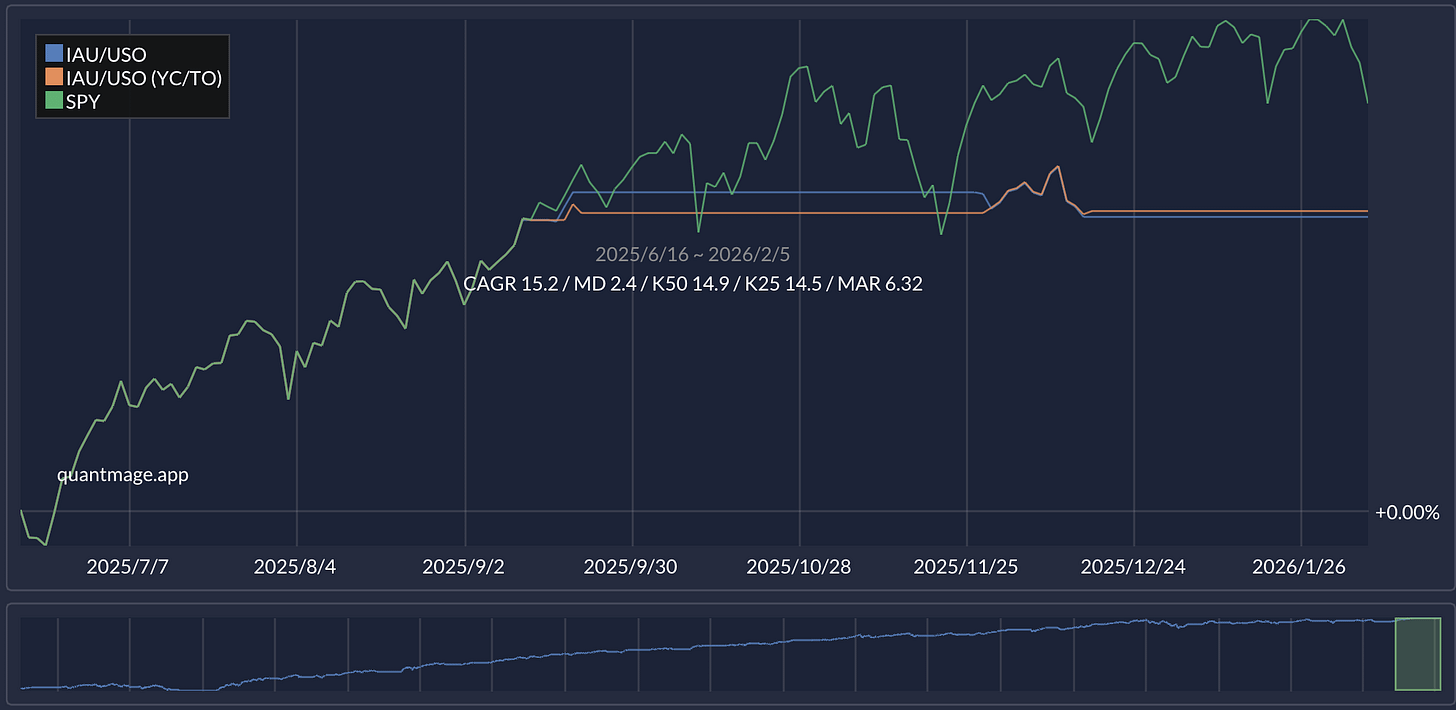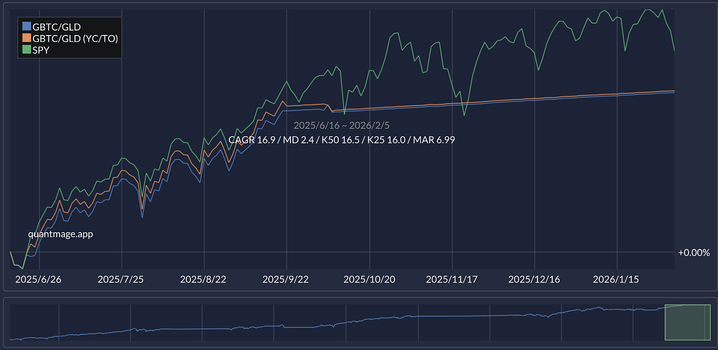 This spell uses a completely different signal from GBTC/GLD, yet the pattern looks strikingly similar. Performance has tracked right in line with its historical results.