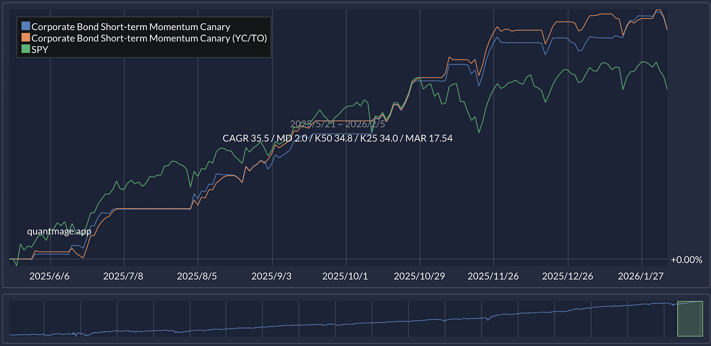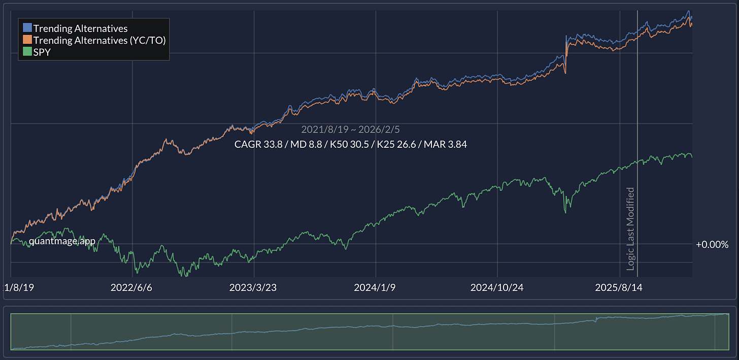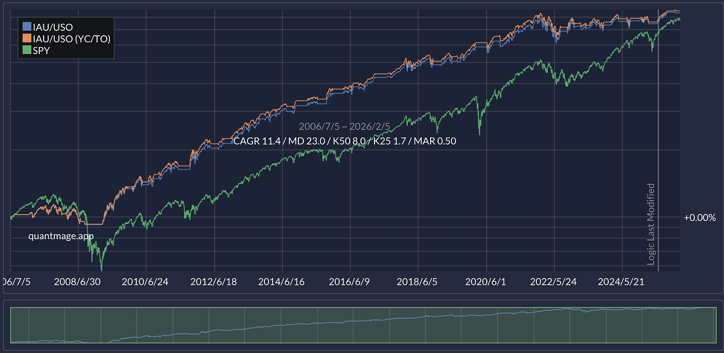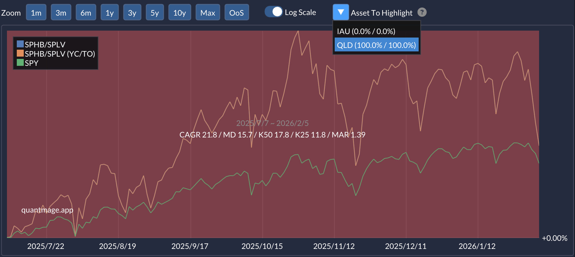 This spell uses a completely different signal from GBTC/GLD, yet the pattern looks strikingly similar. Performance has tracked right in line with its historical results.