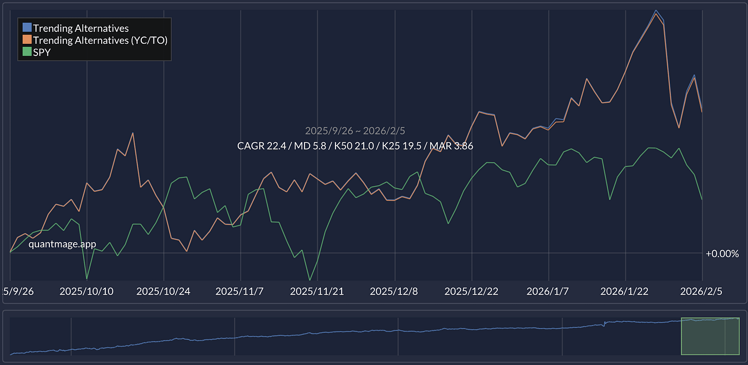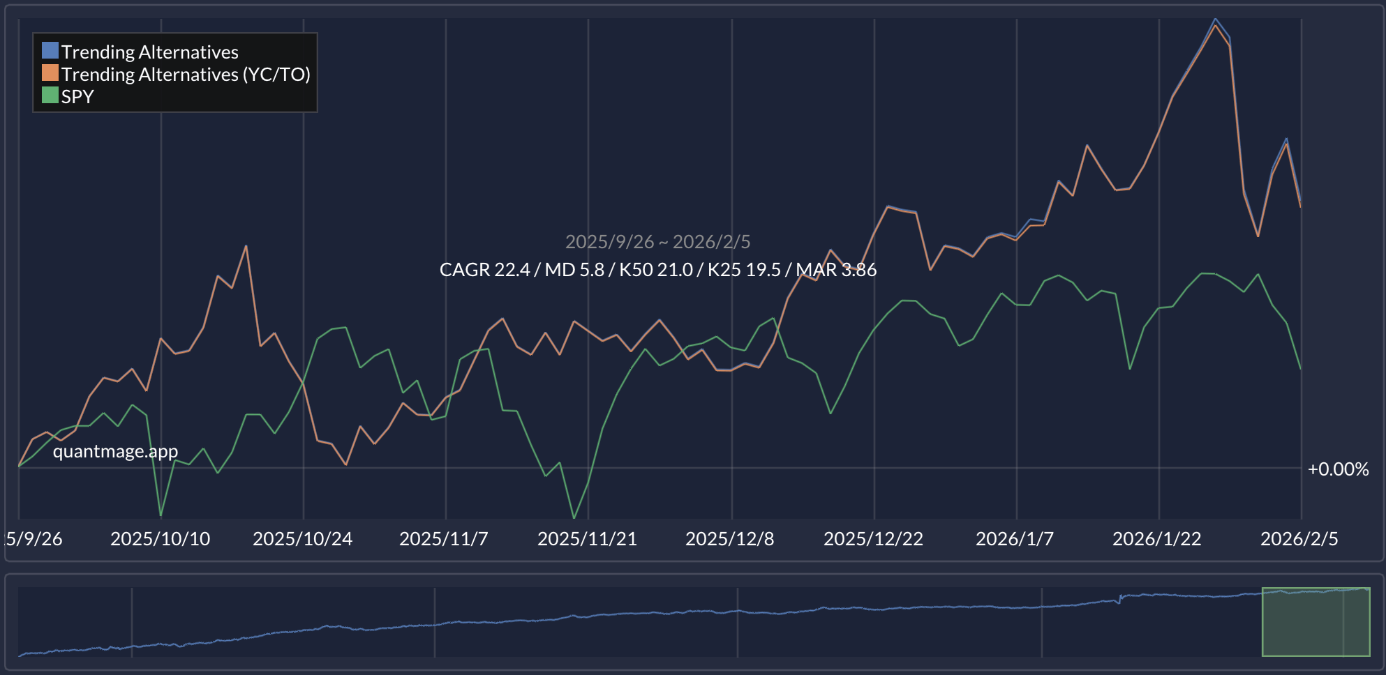 It’s been sitting in cash since October, but zooming out: I’m totally fine with how this has played out. It did what it was supposed to do — participate when conditions were favorable, then step aside when they weren’t.
