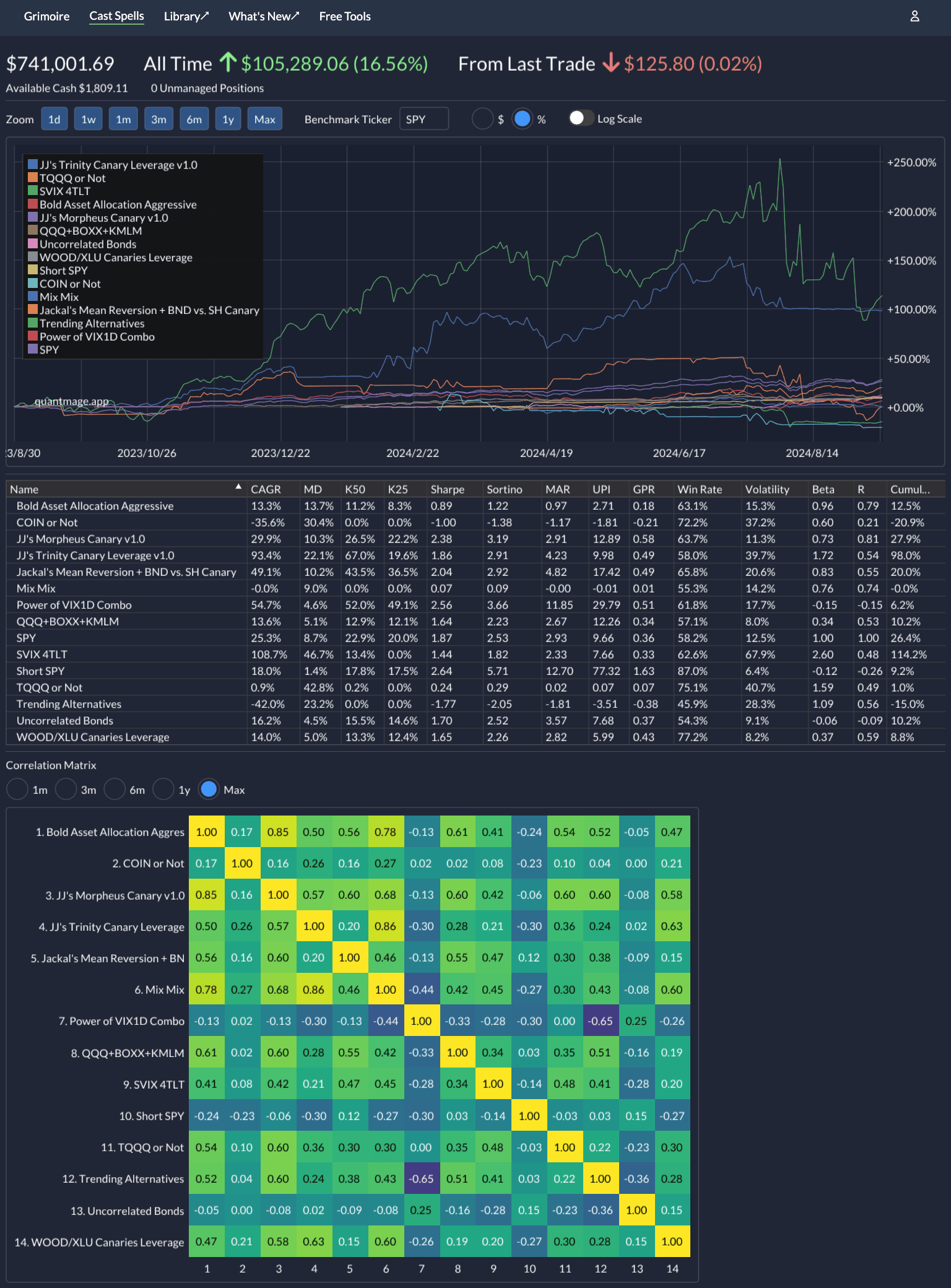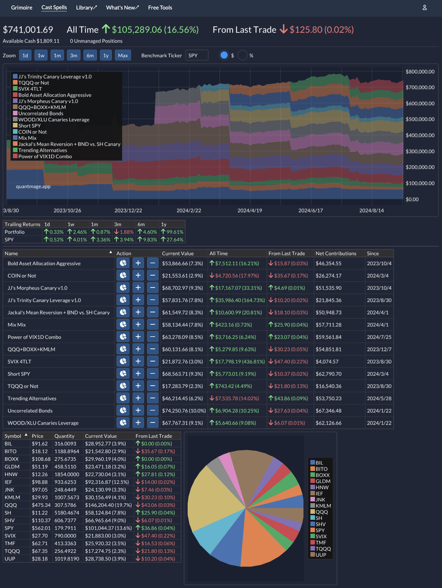 I haven’t made any significant changes, just a few tweaks to the Power of VIX1D Combo, Short SPY, and Trending Alternatives. I’m still confident and committed to my long-term investment strategy.