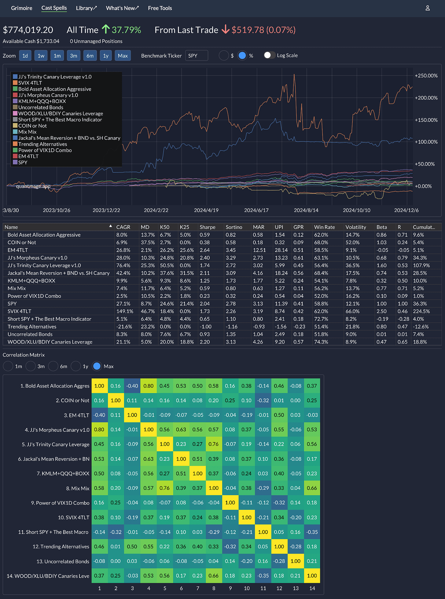 There’s been a bit of excitement, especially with Bitcoin’s post-election rally finally turning COIN or Not positive. I also grafted the idea shared in a recent post to Short SPY as you can see. Along the way, I made some minor tweaks to EM 4TLT and Mix Mix.