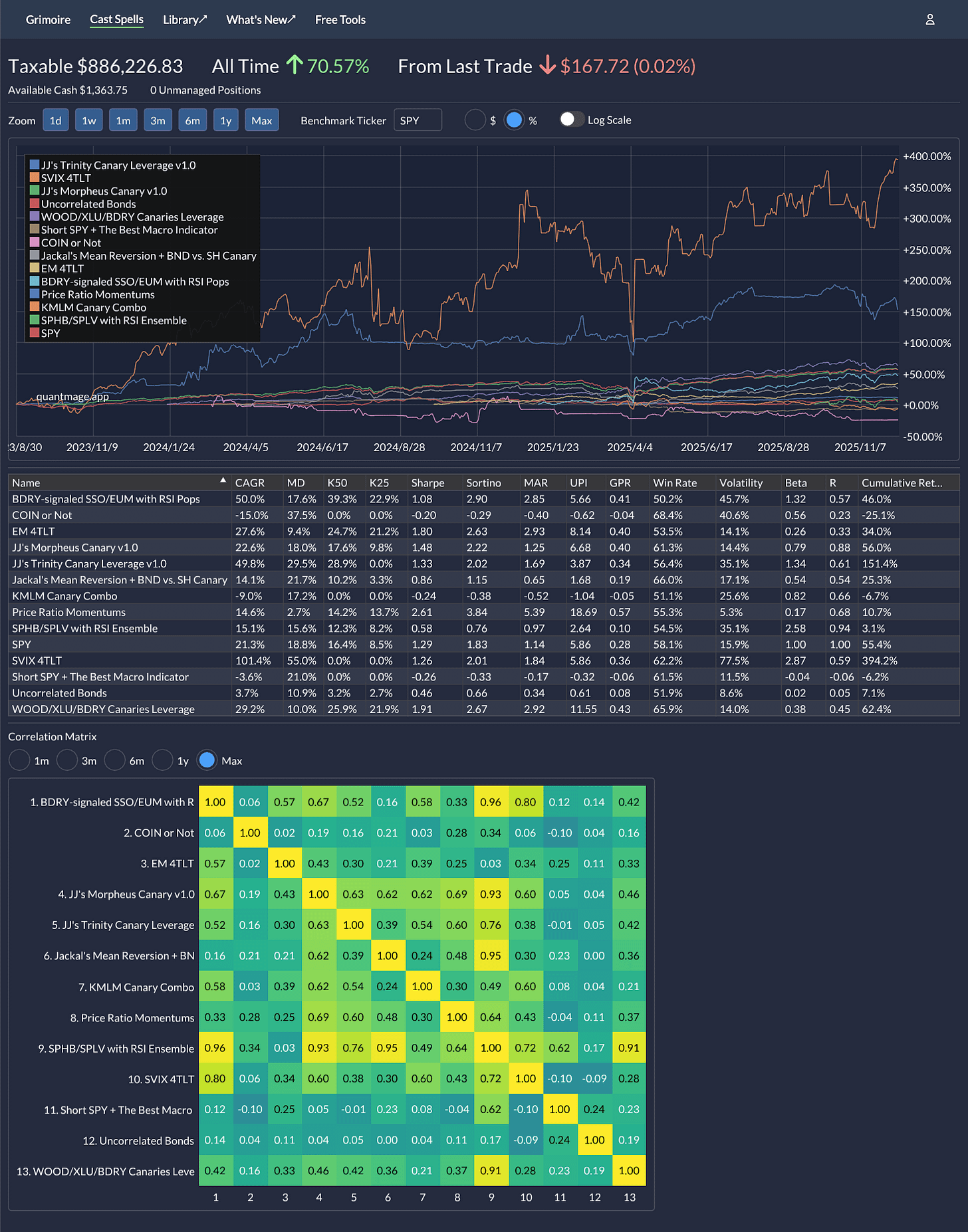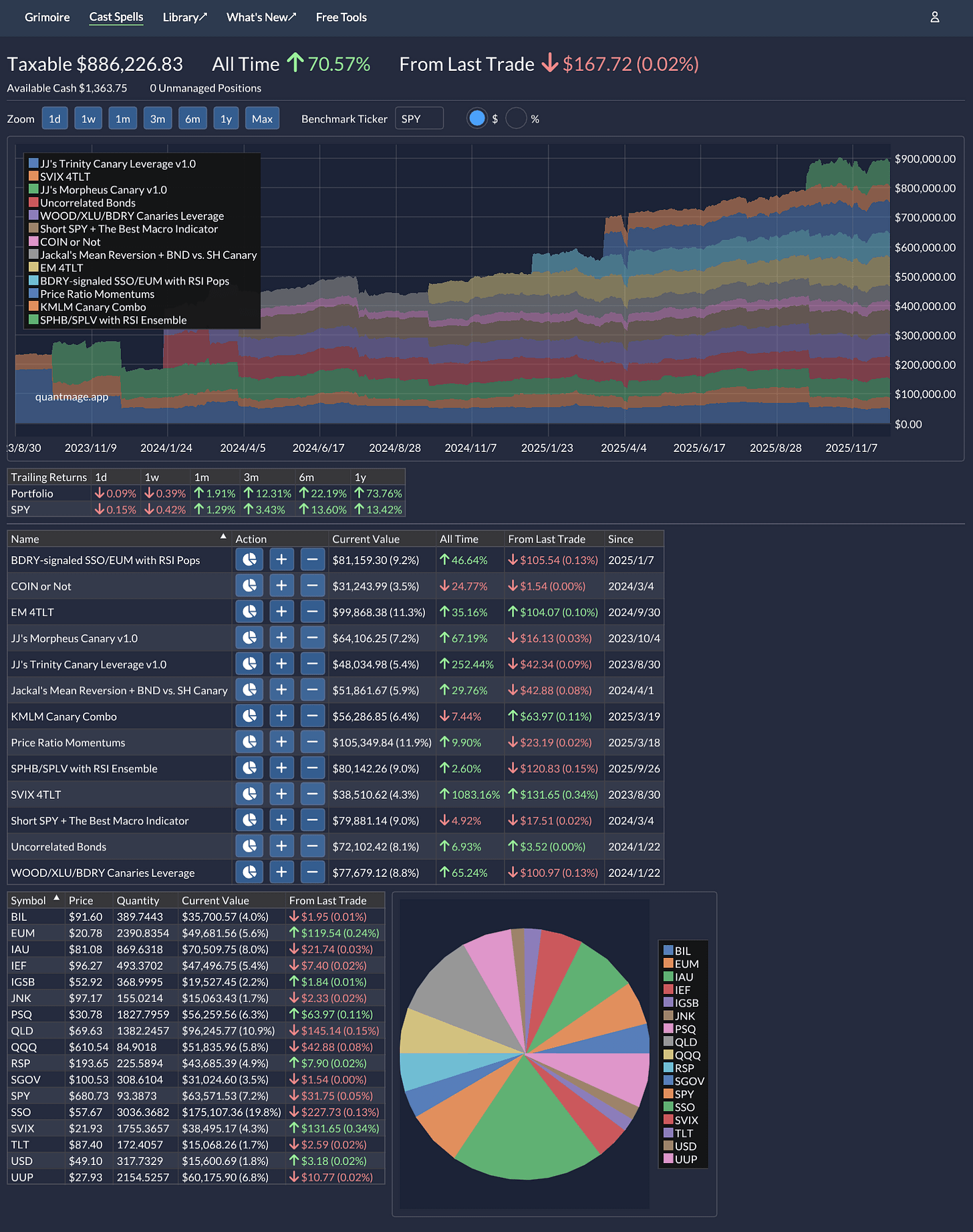 Against that backdrop, my portfolio climbed 2% since the last update, edging out SPY’s 1.3% gain. Not bad, though I’ll admit I was hoping to punch through the $900k level again. Maybe next time.