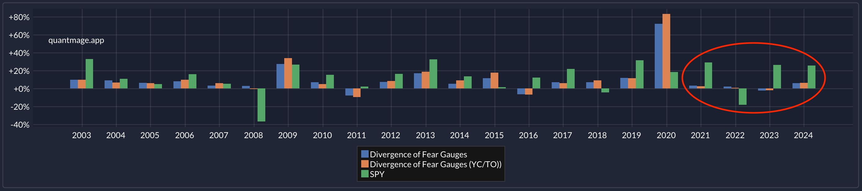 This was a quick seat-of-the-pants experiment, but I think it showed some intriguing results. Assuming there's something to it, what could explain its effectiveness? Well, the bond market is often seen as more sensitive and forward-looking regarding macroeconomic conditions—things like interest rates, inflation, and overall economic health. When the bond market is more fearful than equities, it might be signaling turbulence ahead that hasn't yet been priced into stocks. On the other hand, if MOVE is lower relative to VIX, it might suggest that the equity market is overreacting to short-term events, presenting a potential buying opportunity as the dust settles.