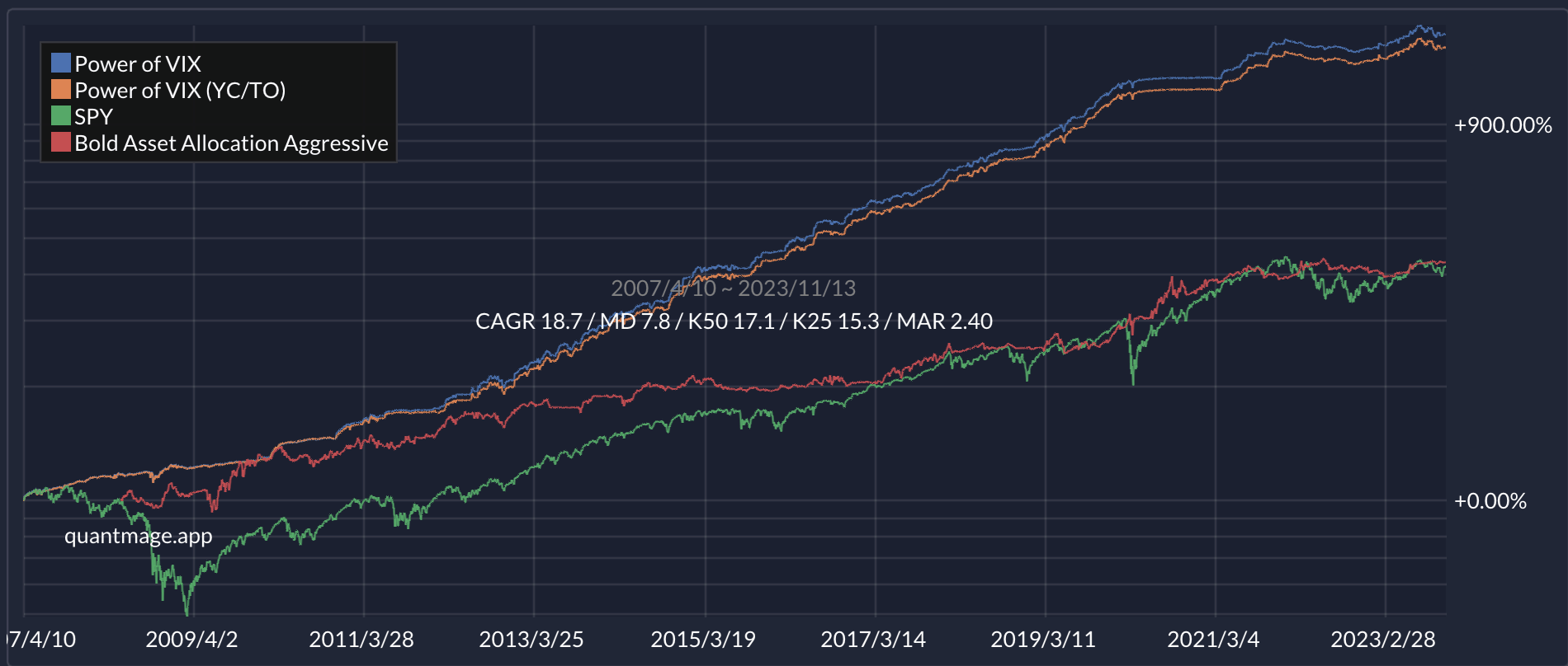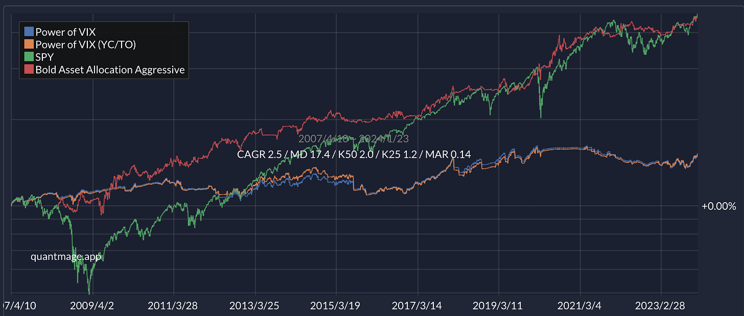 Ah, I was just now messing around with a volatility of volatility strategy in QM, basically holding SVXY when the volatility of SVXY is low or declining. Also, could you explain Trend Clarity sometime? https://quantmage.app/grimoire/cc6c07b2545dfe94500ae6025f1d9beb